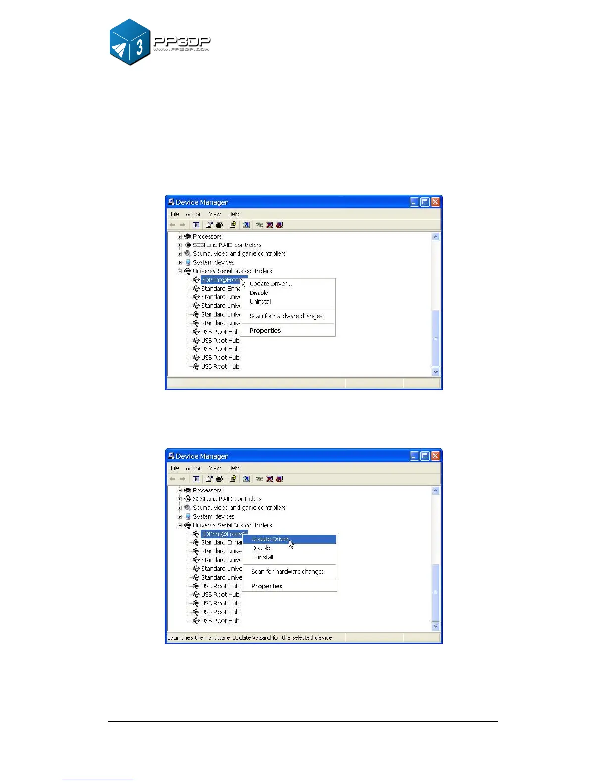 2. Find the “3DPrint@FreeMC” driver in the “Device Manager” dialog box (it