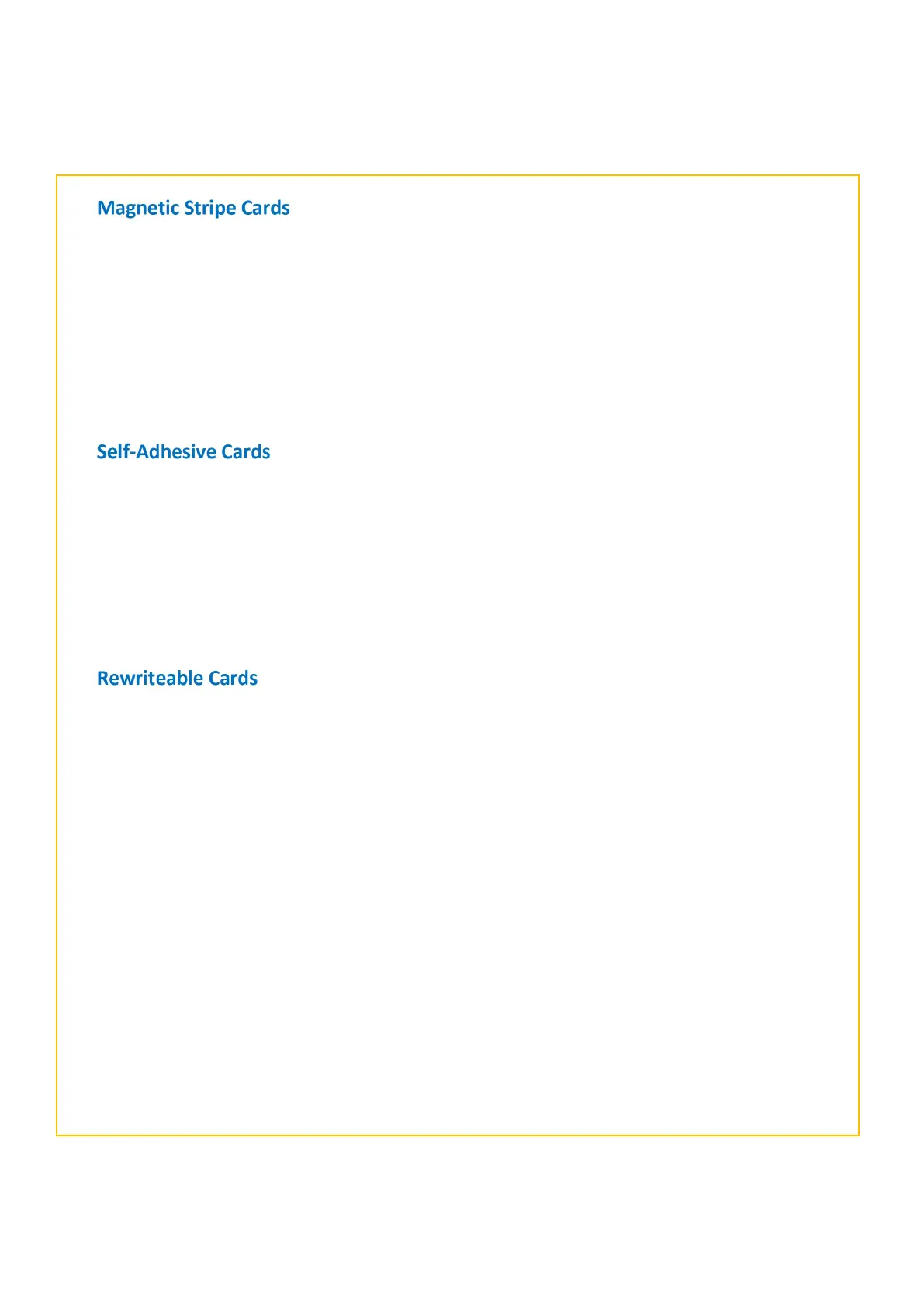 Rewriteable cards are identical to standard PVC cards in terms of physical size and thickness but differ in that