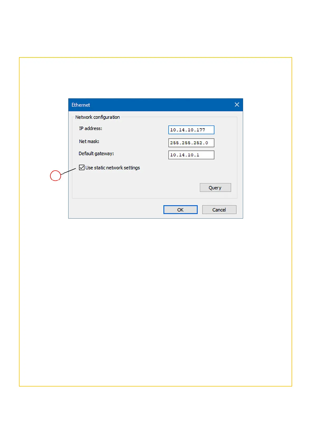 The Network and Configuration window allows the user to set (and store) an IP address in the printer. The user