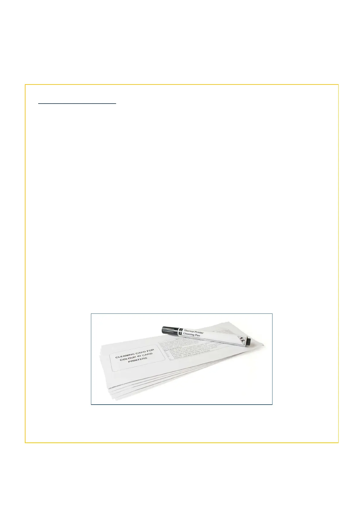 The recommended cleaning kit (Pt. 3633-0053) comprises of ten cleaning cards and a cleaning pen.
