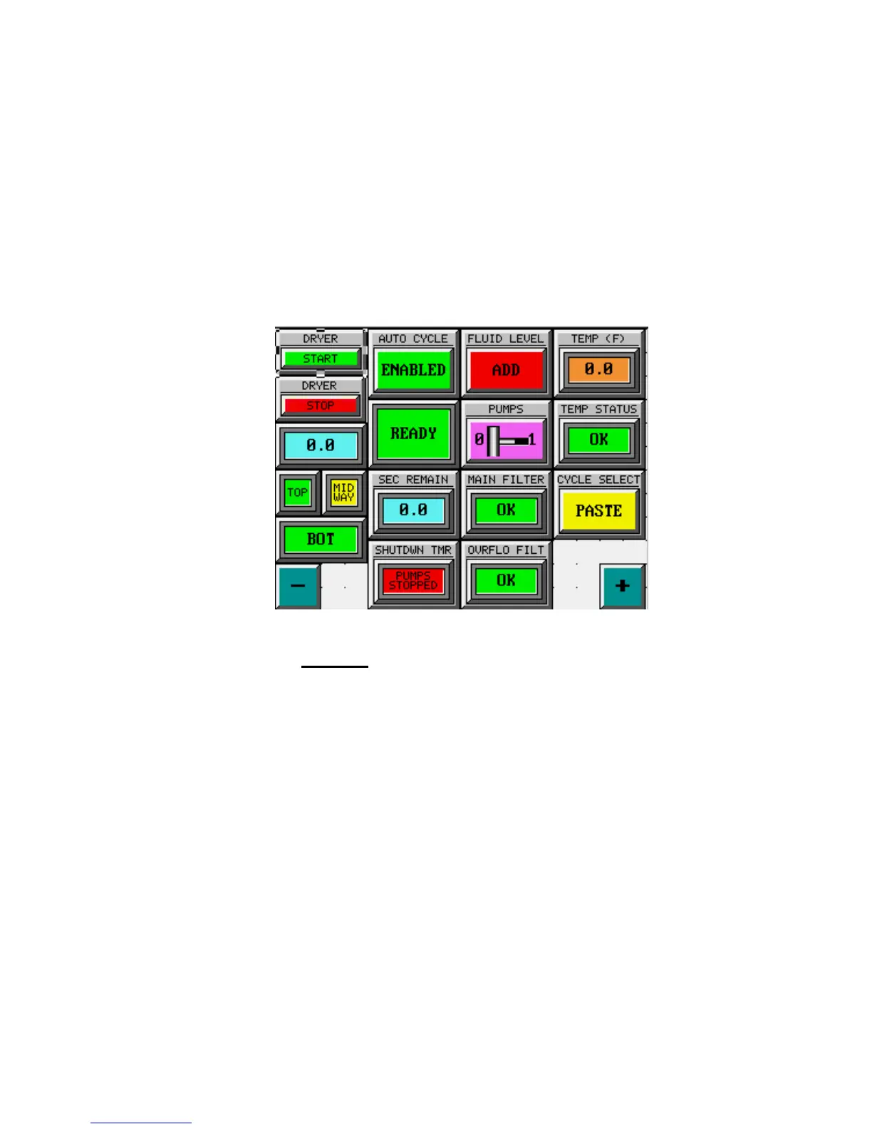 The [TEMP (F)] indicator reports the measured temperature of the cleaning fluid in