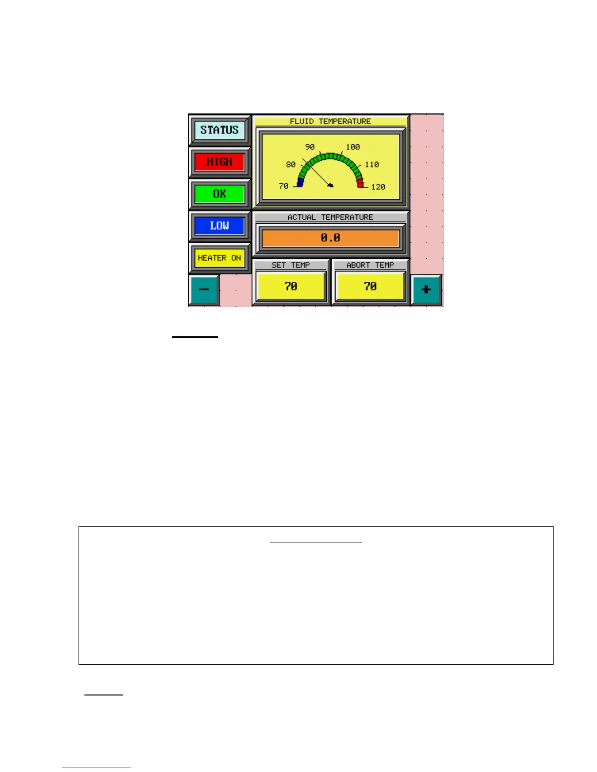 passcode and the following “Fluid Temperature” screen will then appear: