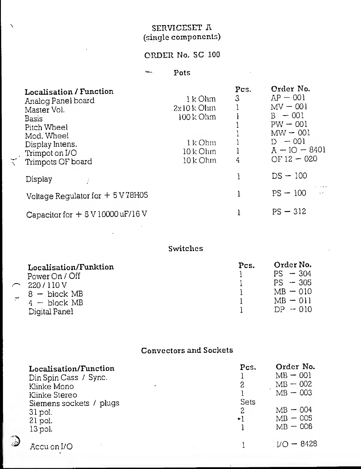 PPG wave 2.2 - Service Set A - Single Components; Pots; Switches; Connectors and Sockets