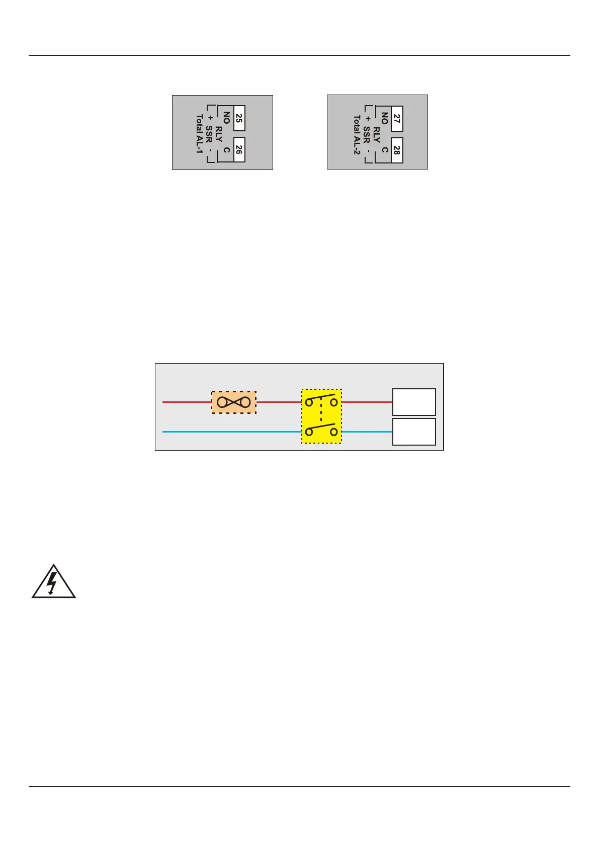 given to prevention of access to the Power Supply terminals by unauthorised personel. If the Relay contacts are
