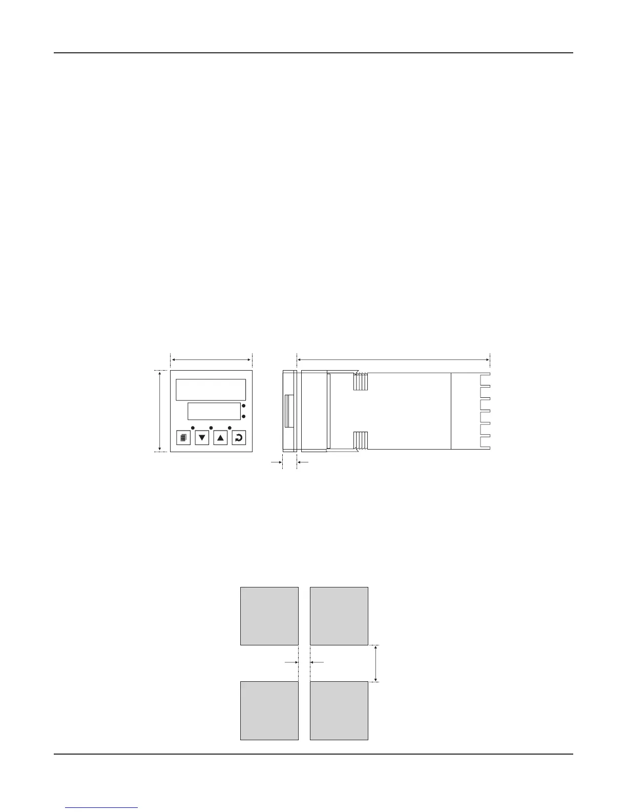 The Figure 11.2 shows the panel cutout requirements for a single controller and also the minimum spacing recommended if