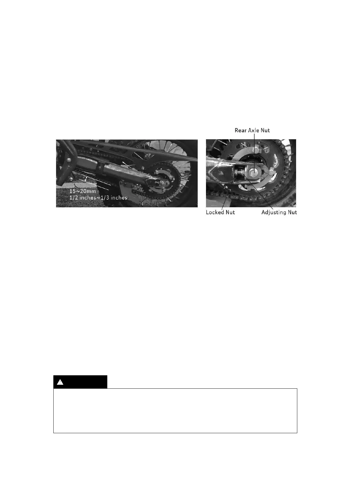 1. When chain adjustment is needed, loosen rear axle nut .