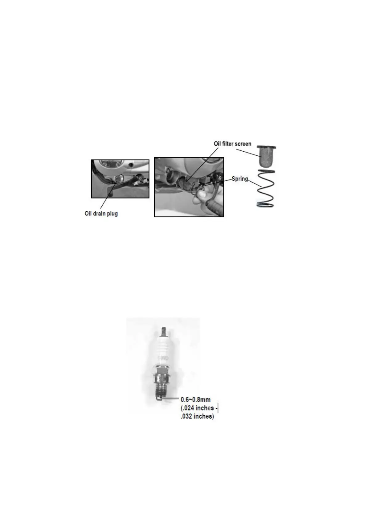 3. Regulate the gap of the spark plug to 0.6-0.8mm. (.024 inches - .032 inches)