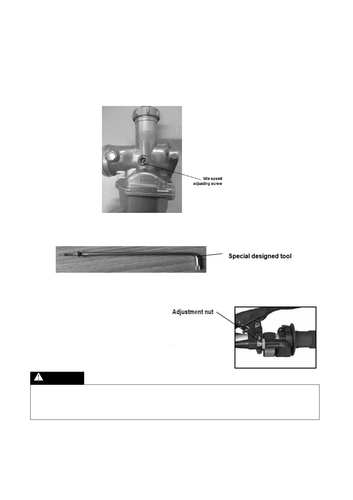 Do not try to correct a malfunctioning carburetor by adjusting the idling speed. If the carburetor