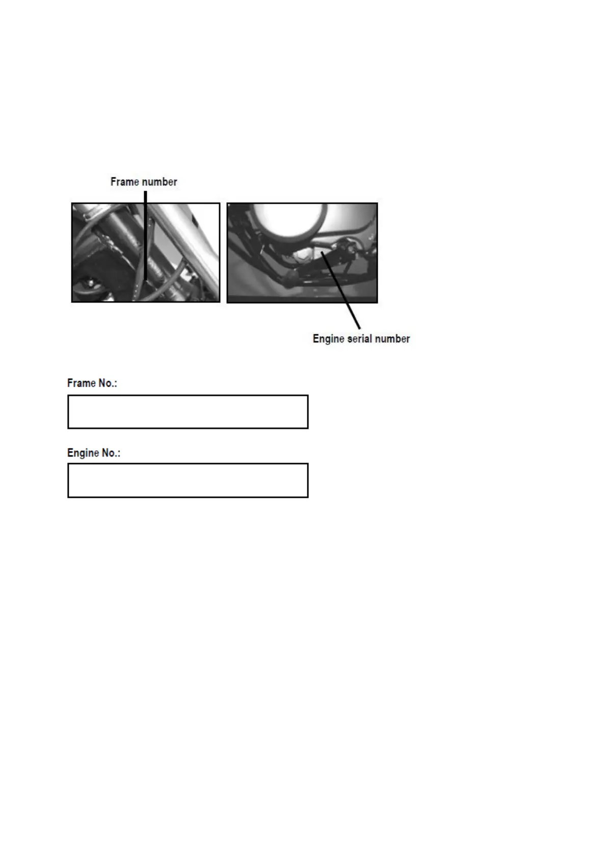 The Frame number is stamped on front of Dirt bike frame. The engine number is located on the