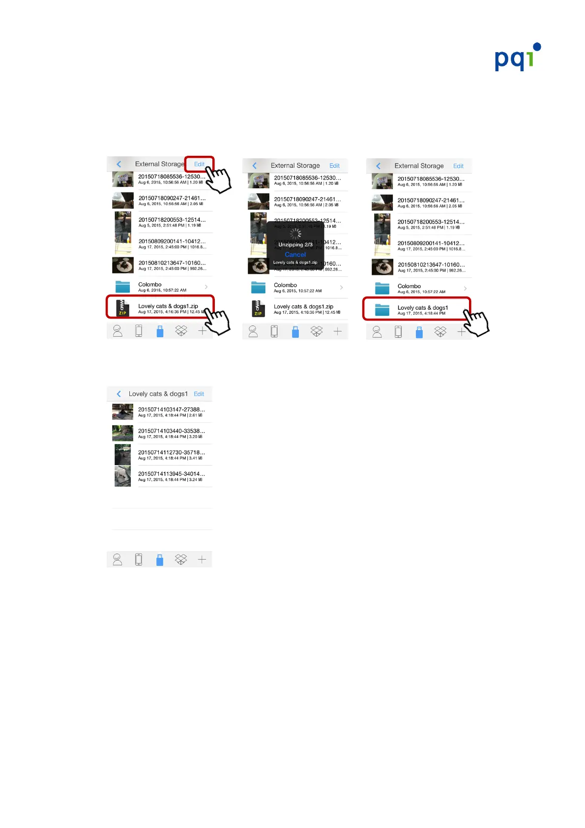 1. Start!the!PQI!iConnect+!App,!choose!“External!Storage”!and!select!the!file(s)!