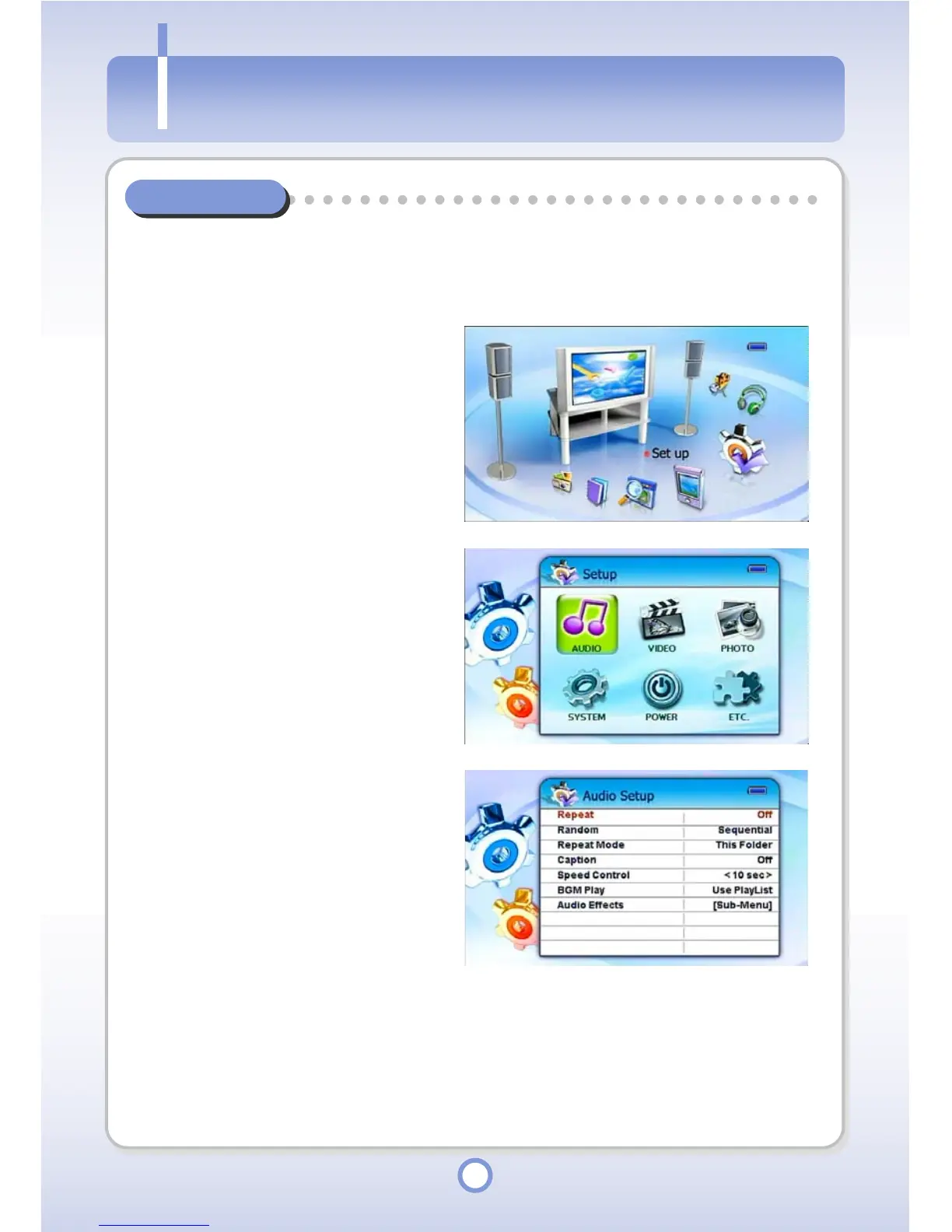 You can set audio settings such as Repeat, Random, Repeat Mode, Caption, Speed Control,