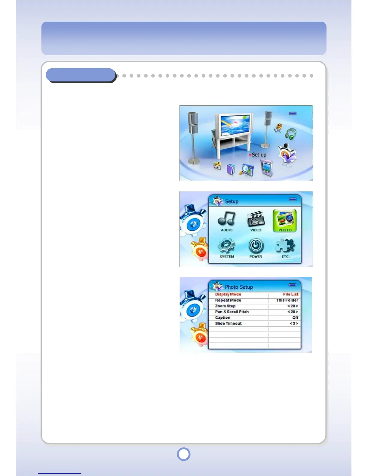 - The Photo Setup list appears.