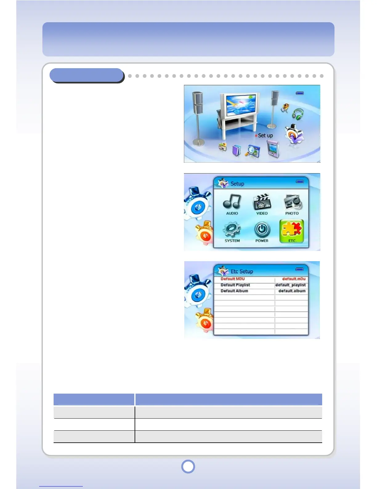 - The Etc Setup list appears.