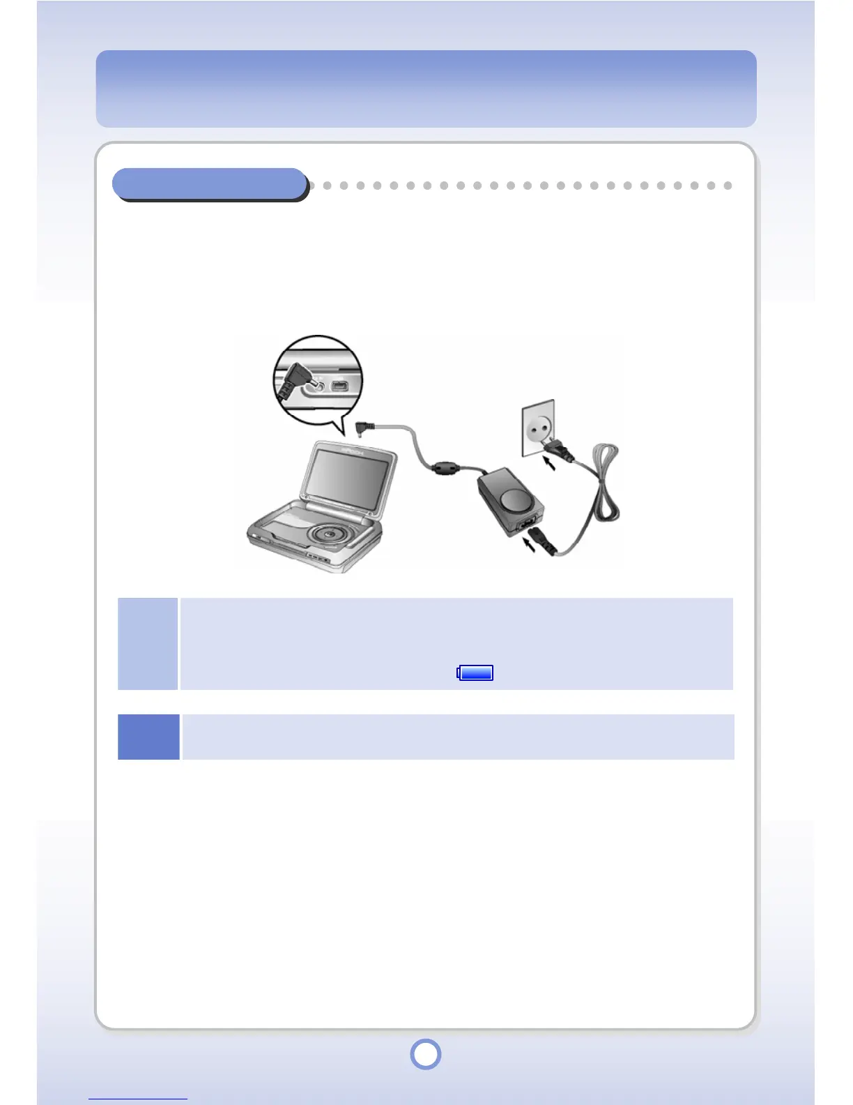 Connect the AC adapter to the DC-5V jack of the player and connect the AC adapter plug into