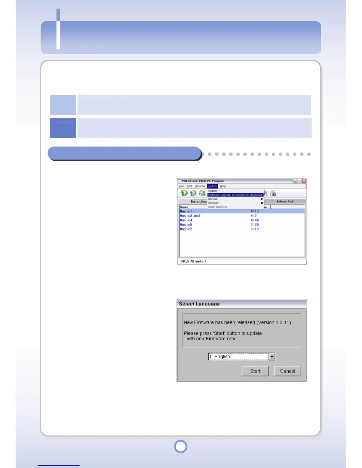 Be sure to keep the connection with the AC adapter while upgrading the firmware of the player.