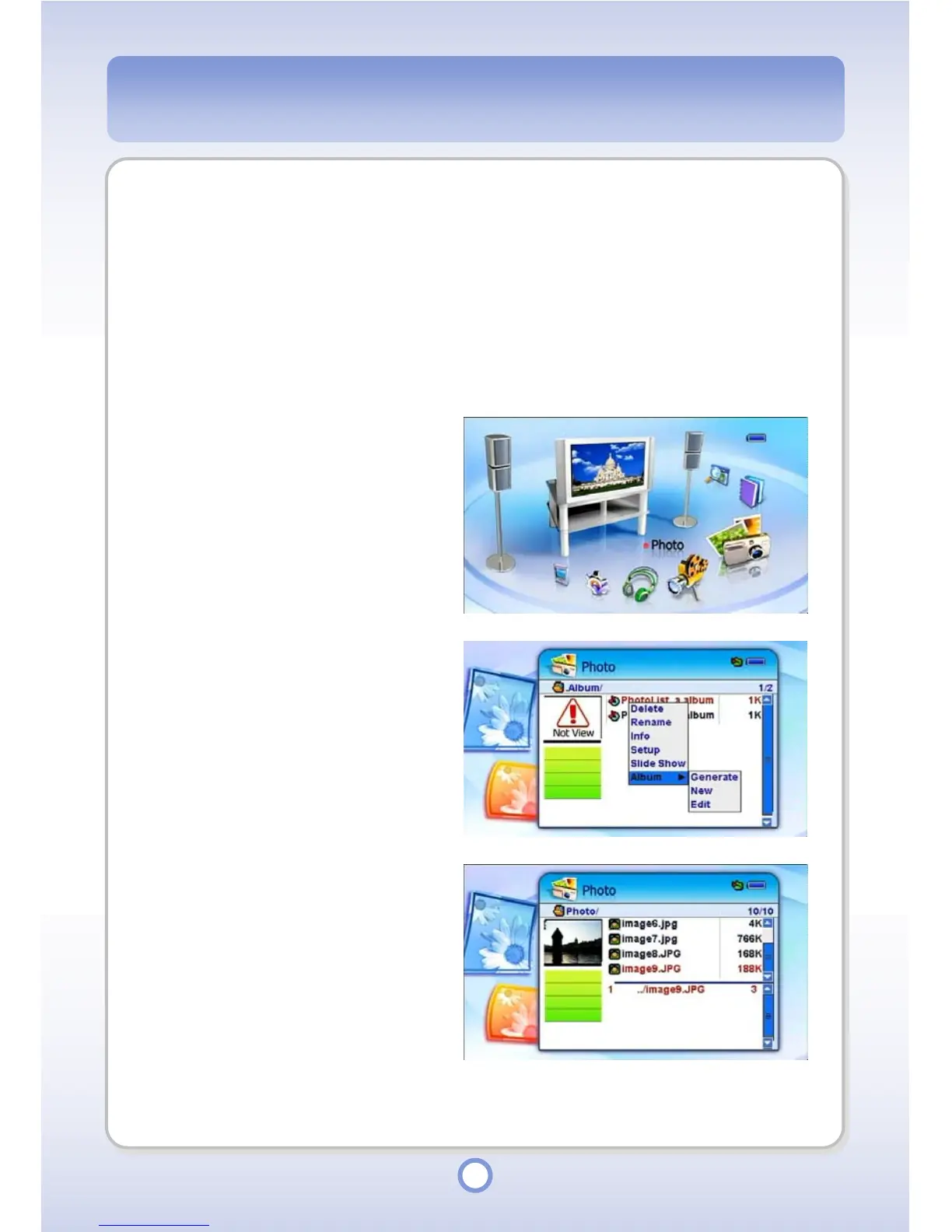 Using the Album Editor, you can create an album with your favorite photo files and manage
