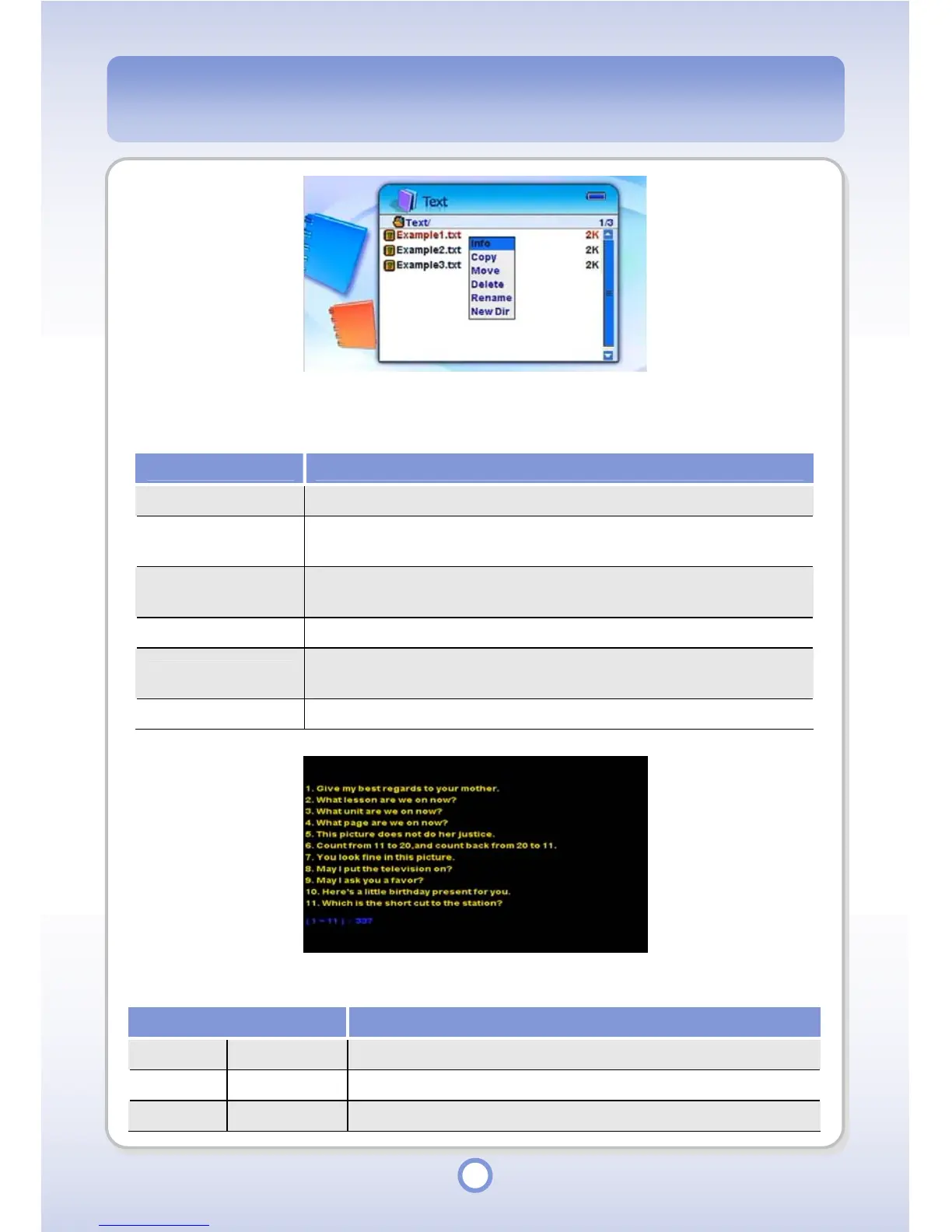 When you press the <MENU> button in the text file list, a pop-up menu appears providing the