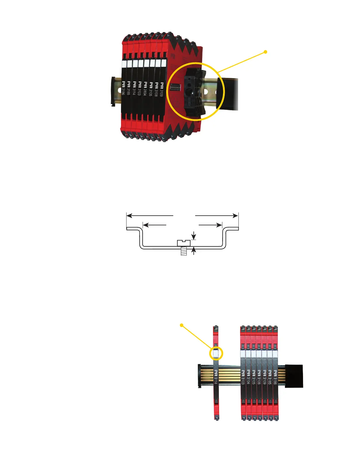 holding the 7.5 mm DIN rail shall be no more than 3.5 mm high in order to avoid short circuit between the power rail