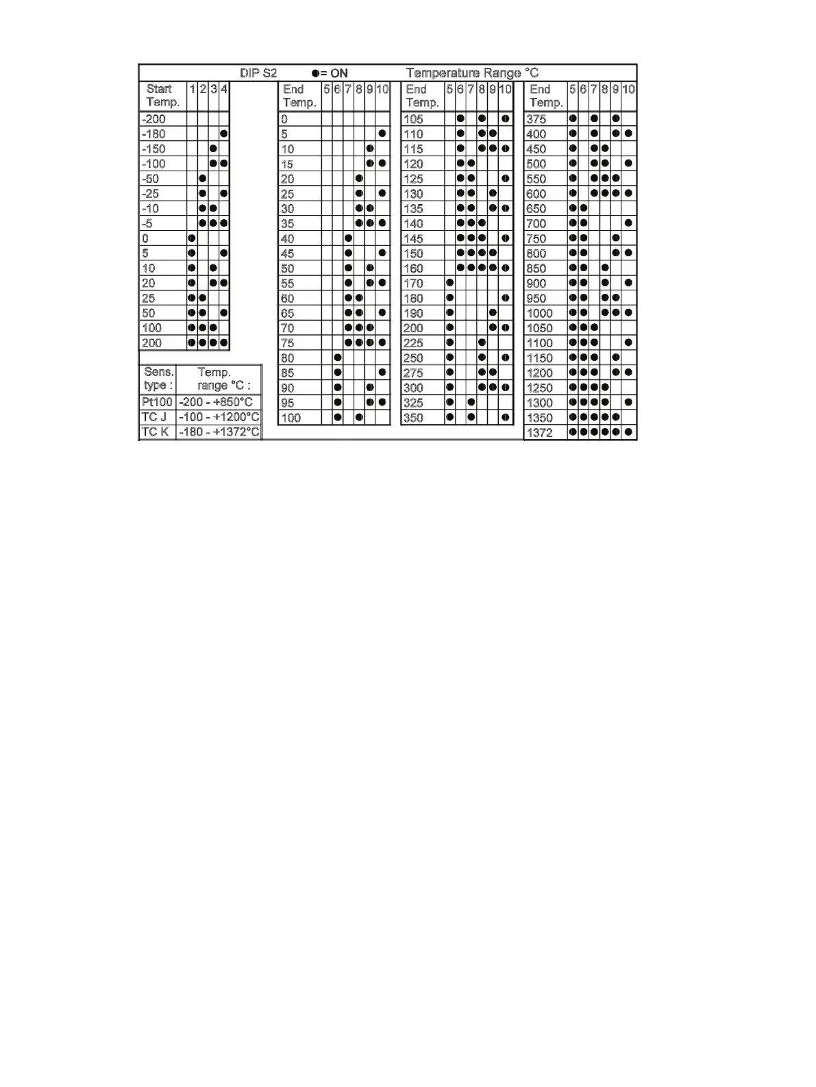Valid TC K range: -180...+1372°C = correct DIP-switch setting