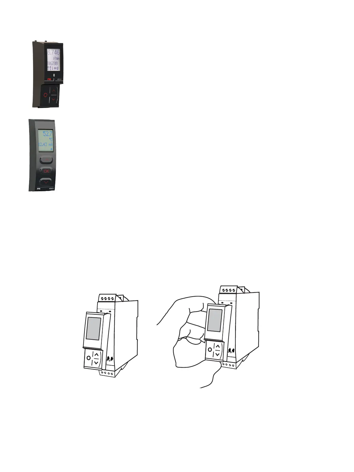 1: Insert the tabs of the PR 4500 into the holes at the top of the device.