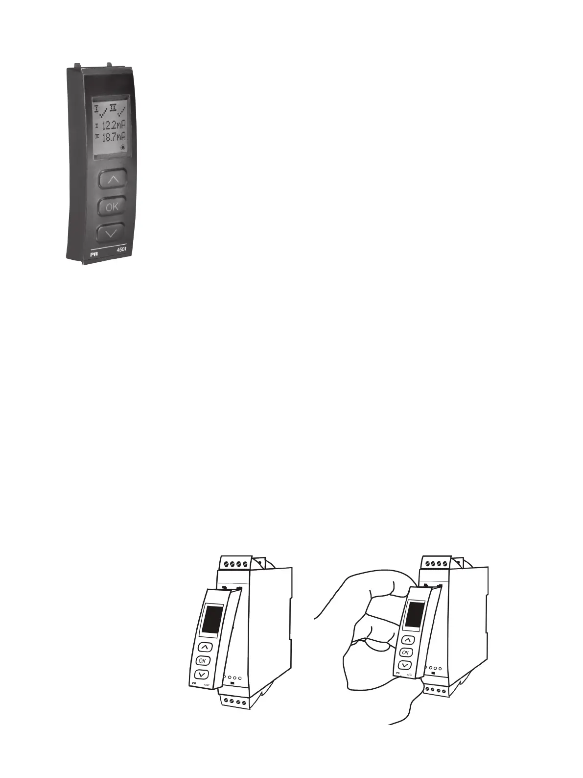1: Insert the tabs of the PR 45xx into the holes at the top of the device.