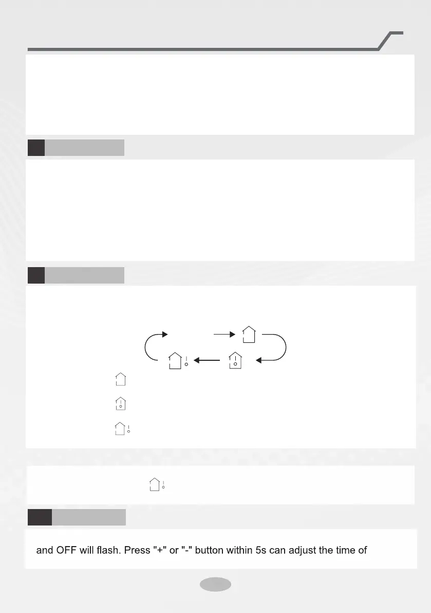 ON. After each pressing of "+" or "-" button, time will increase or decrease half an
