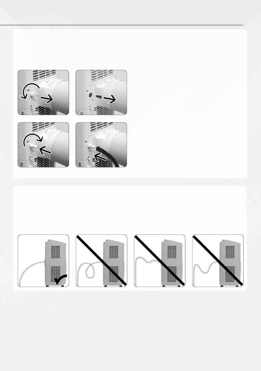 Placez le climatiseur sur une surface plane, assurez-vous que le tuyau est libre de tout obstacle et