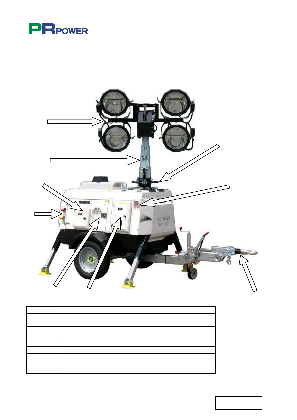 PR POWER PR8000 - Identification of External Components; Lighting Tower Breakdown