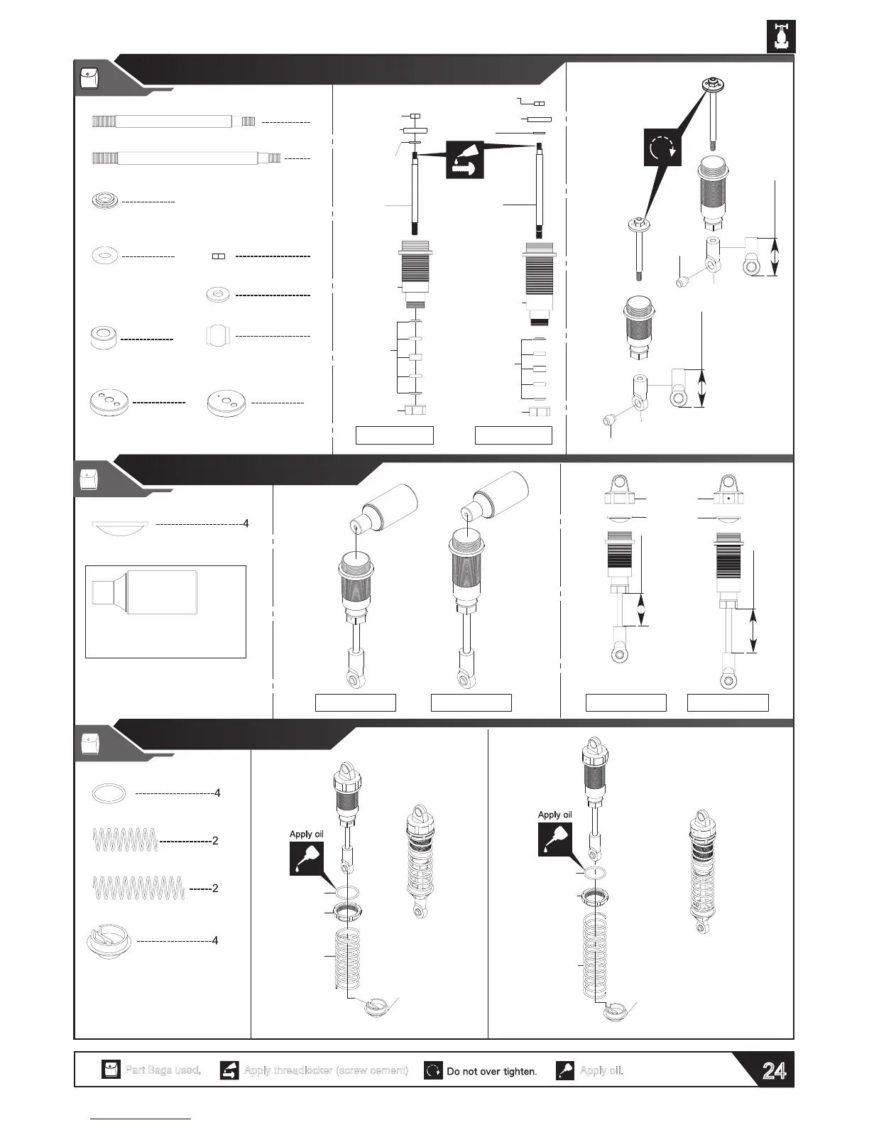 PR RACING SB401 - Shocks, Motor, Battery, Wheels, and Body (BAG E); Shock Assembly - Shafts and Cartridges