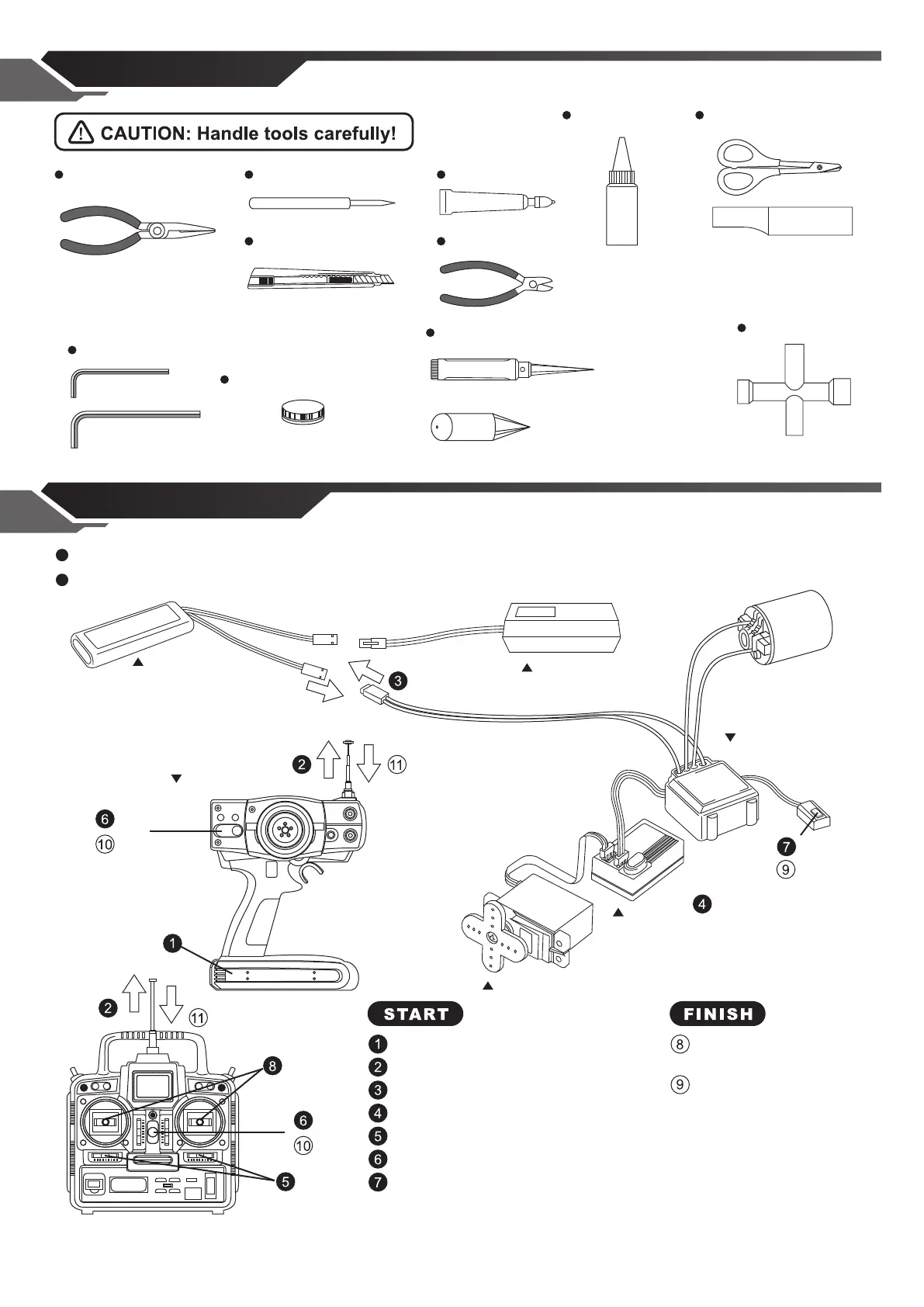 Set up the radio control system as indicated below.