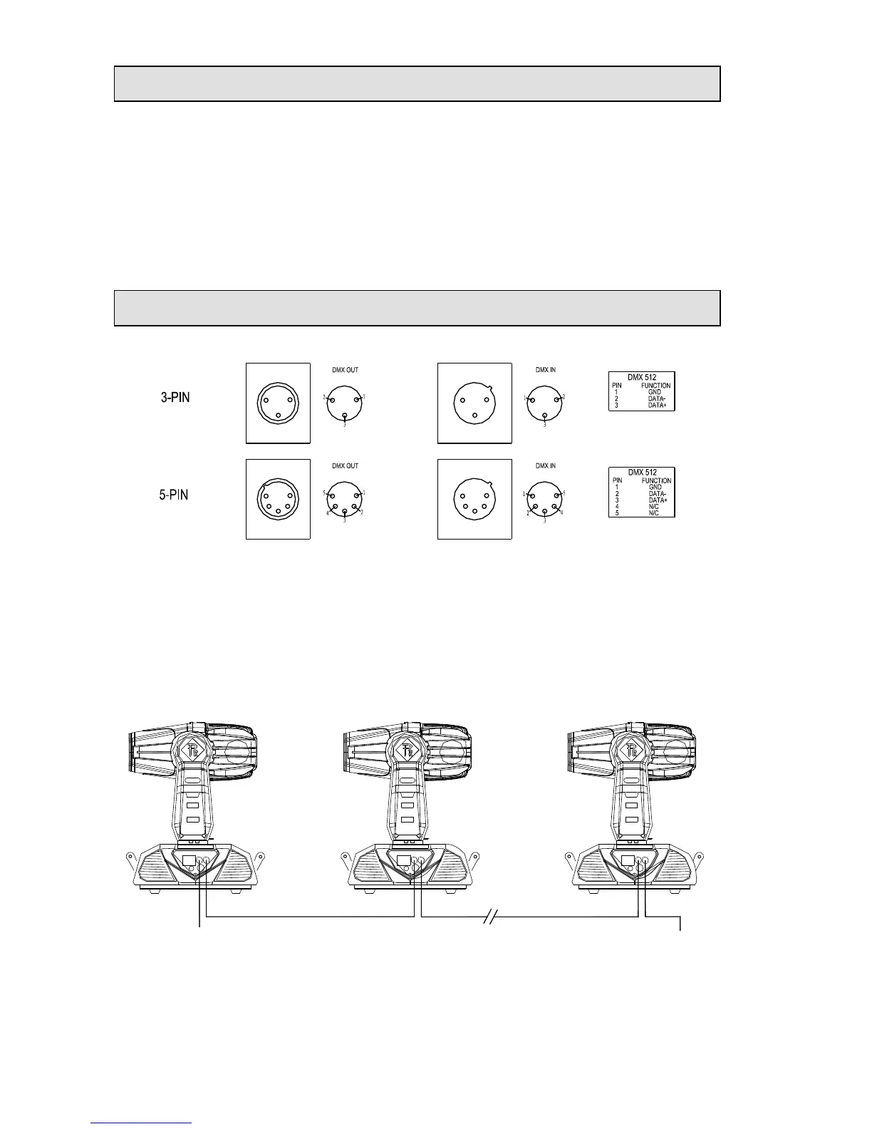 Connect the controller’s output to the first fixture’s input, and connect the first fixture’s output to the