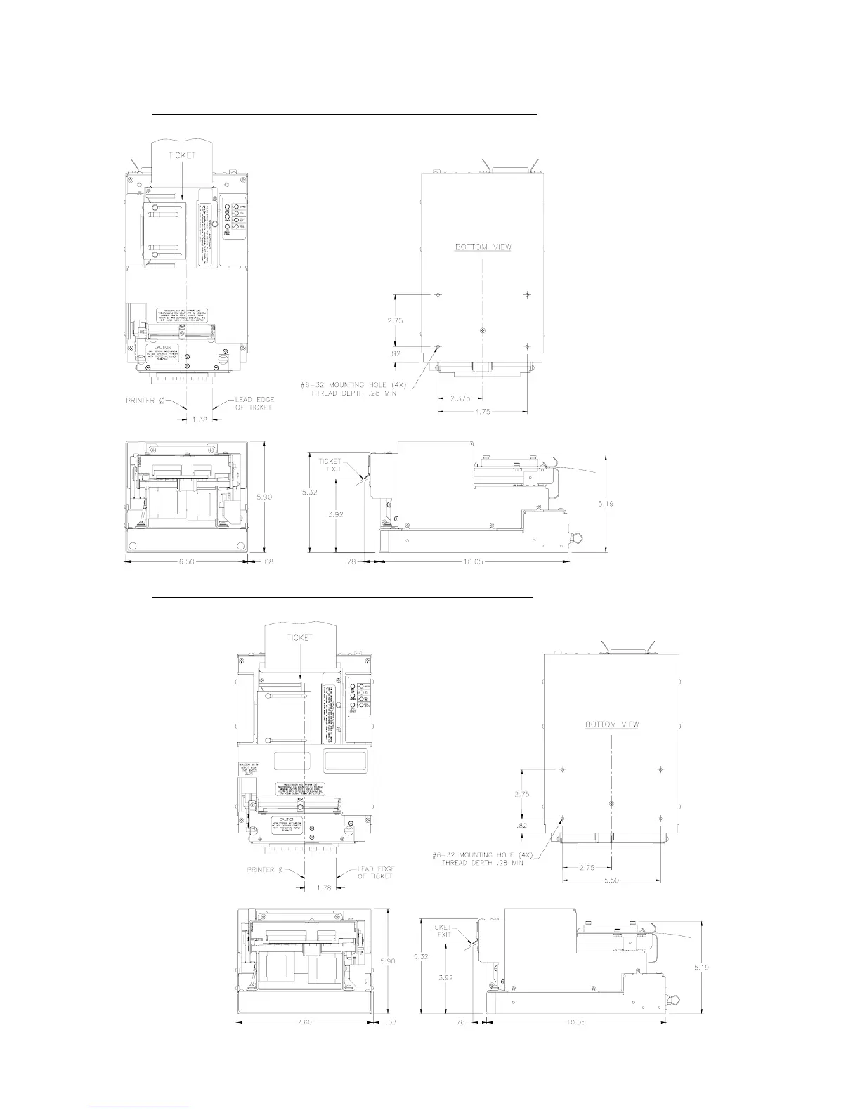 Practical Automation ITX 3000 series - Mechanical Detail Drawing: Kitx Kiosk Printer (2;3.25-AC Model); Mechanical Detail Drawing: Kitx Kiosk Printer (4.00 -AC Model)