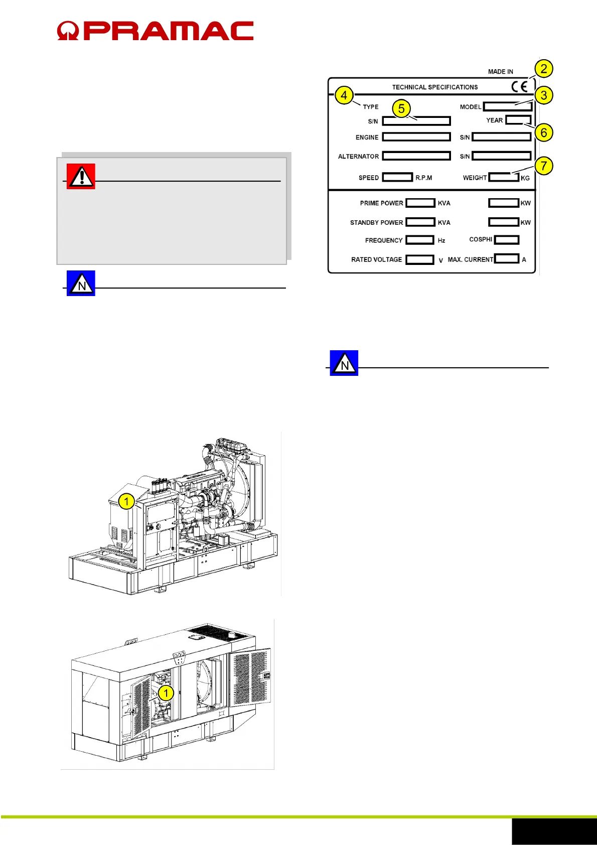 The generator is identified by a special identification