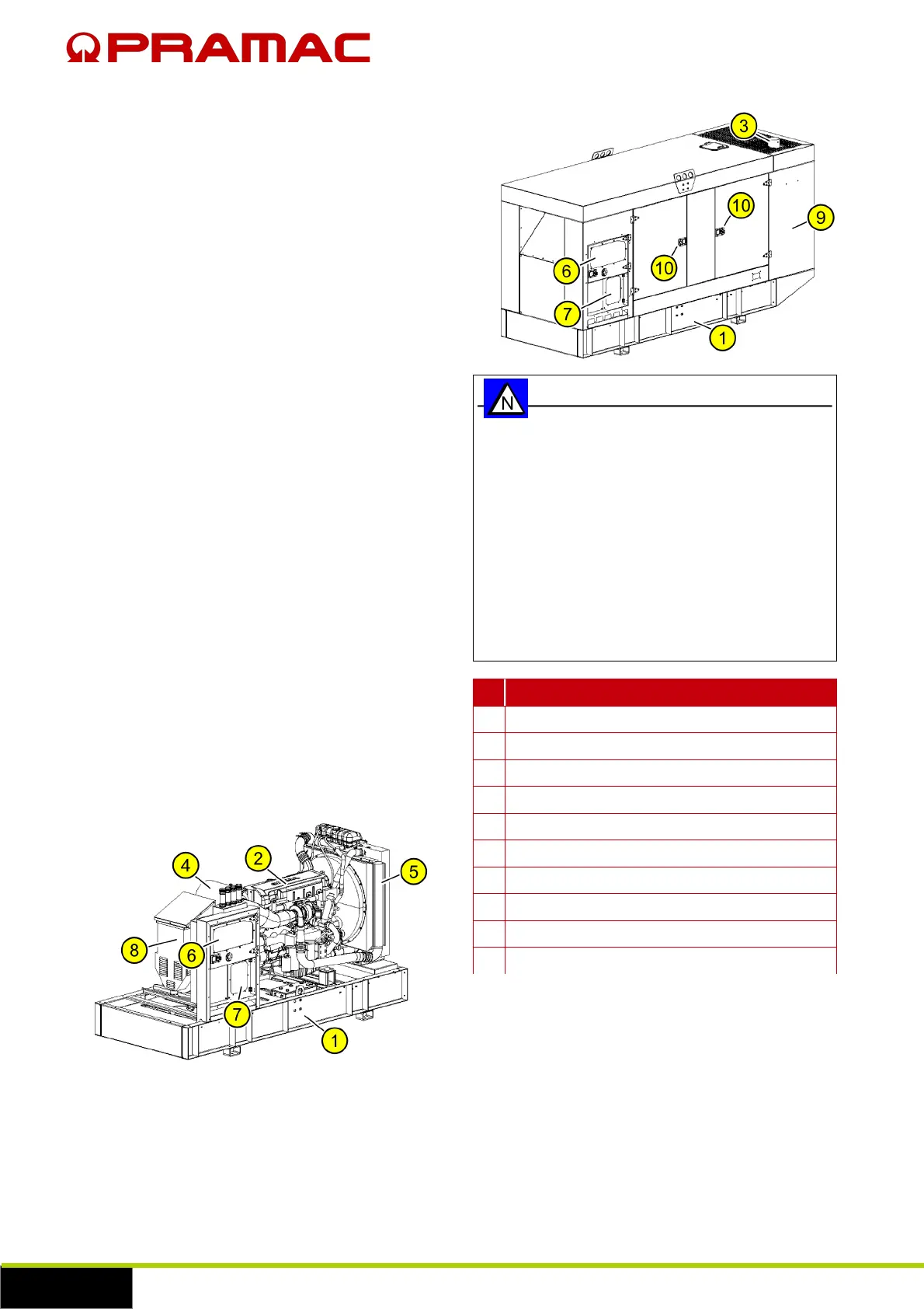 mounted (engine, alternator, control panel, etc.).