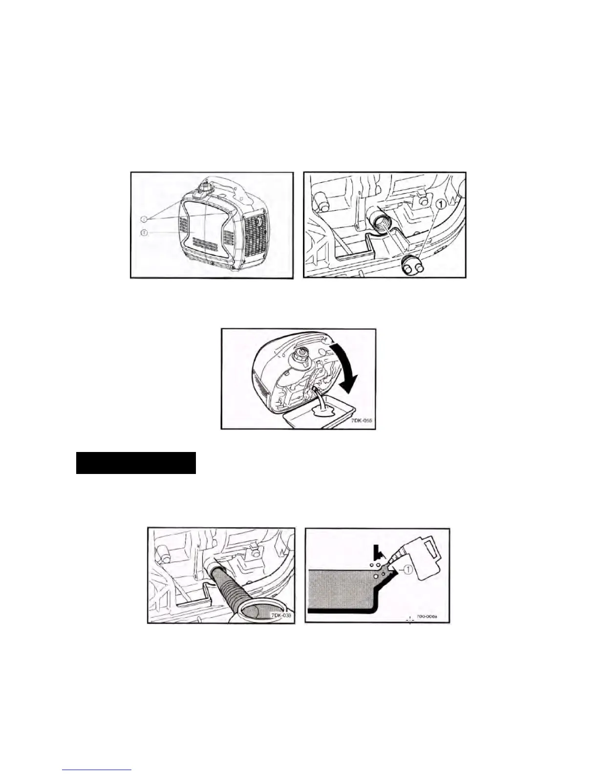 4. Place an oil pan under the engine. Tilt the generator to drain the oil