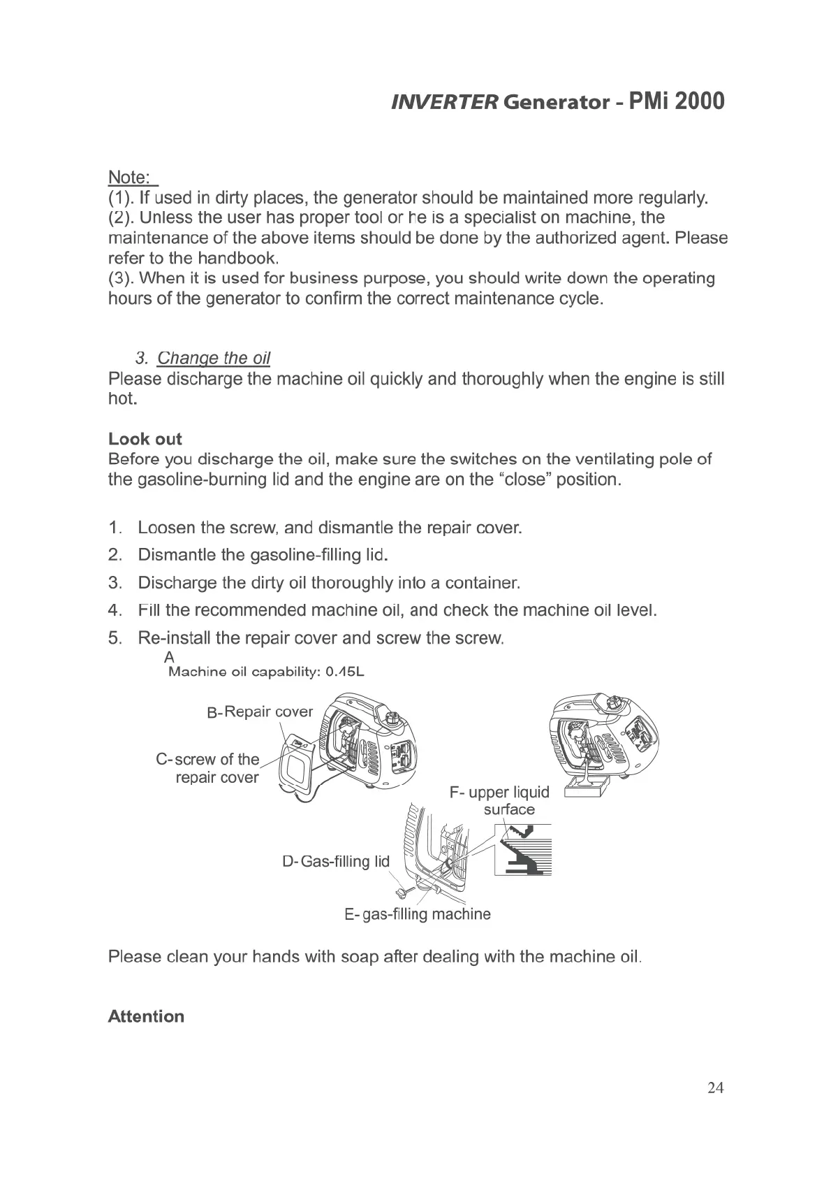 Pramac PMi 2000 - Change the Oil