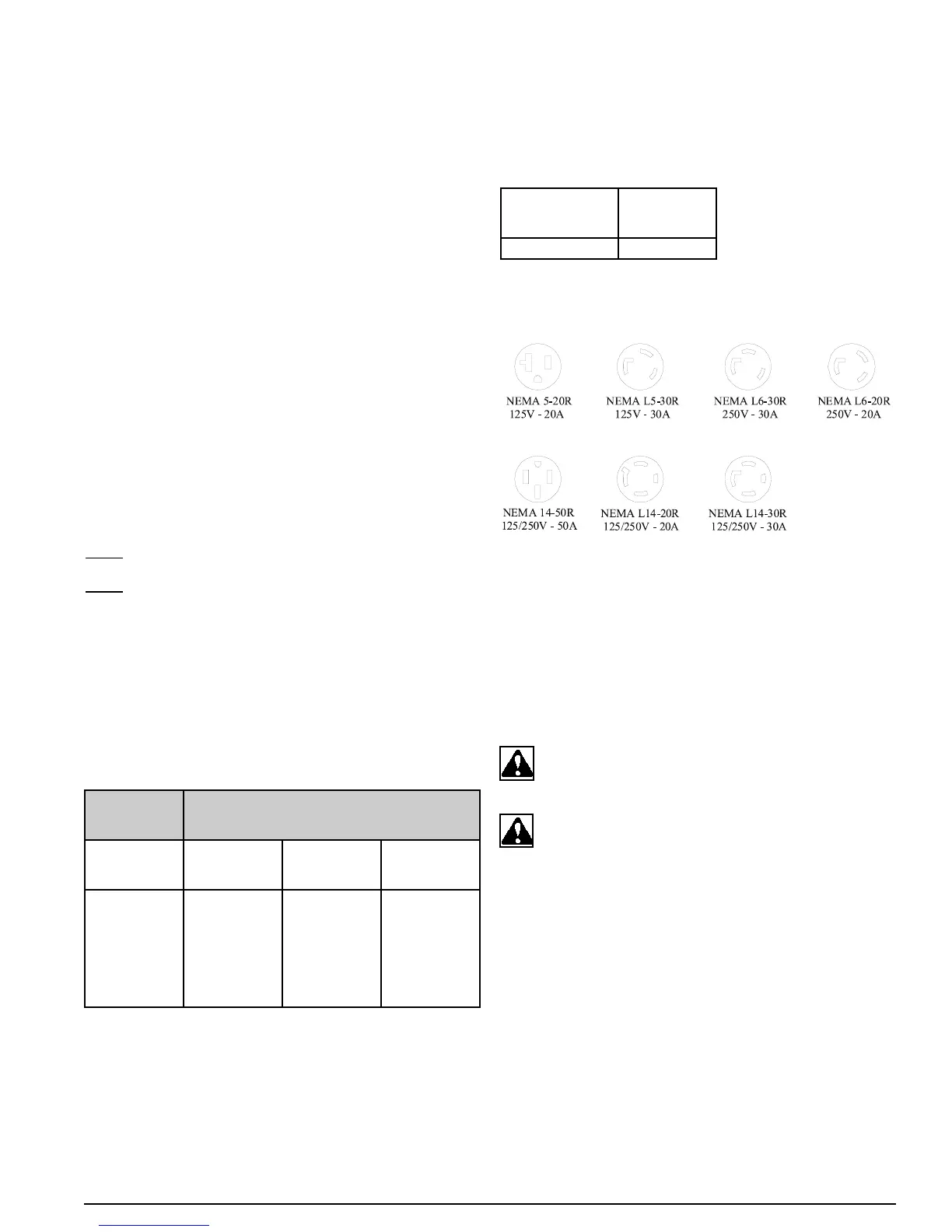 the power receptacles fitted to your generator. The circuit