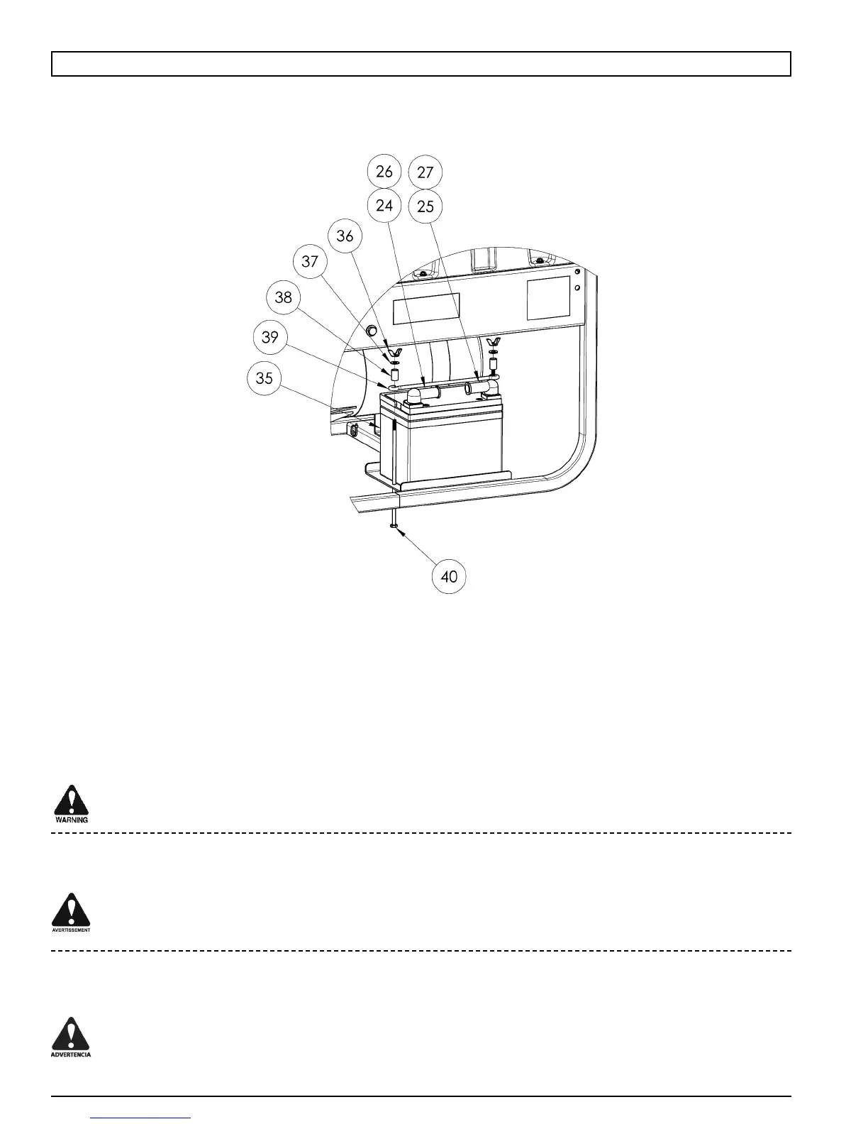 BATTERY INSTALLATION / INSTALLATION DE LA BATTERIE / INSTALACION DE BATERIA