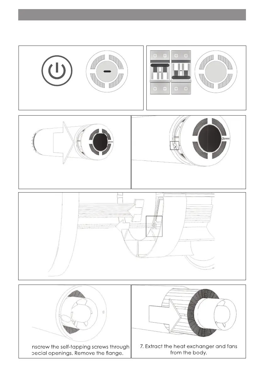 3. Open the lid of the recuperator. 4. Turn the fasteners of the lid and remove it.