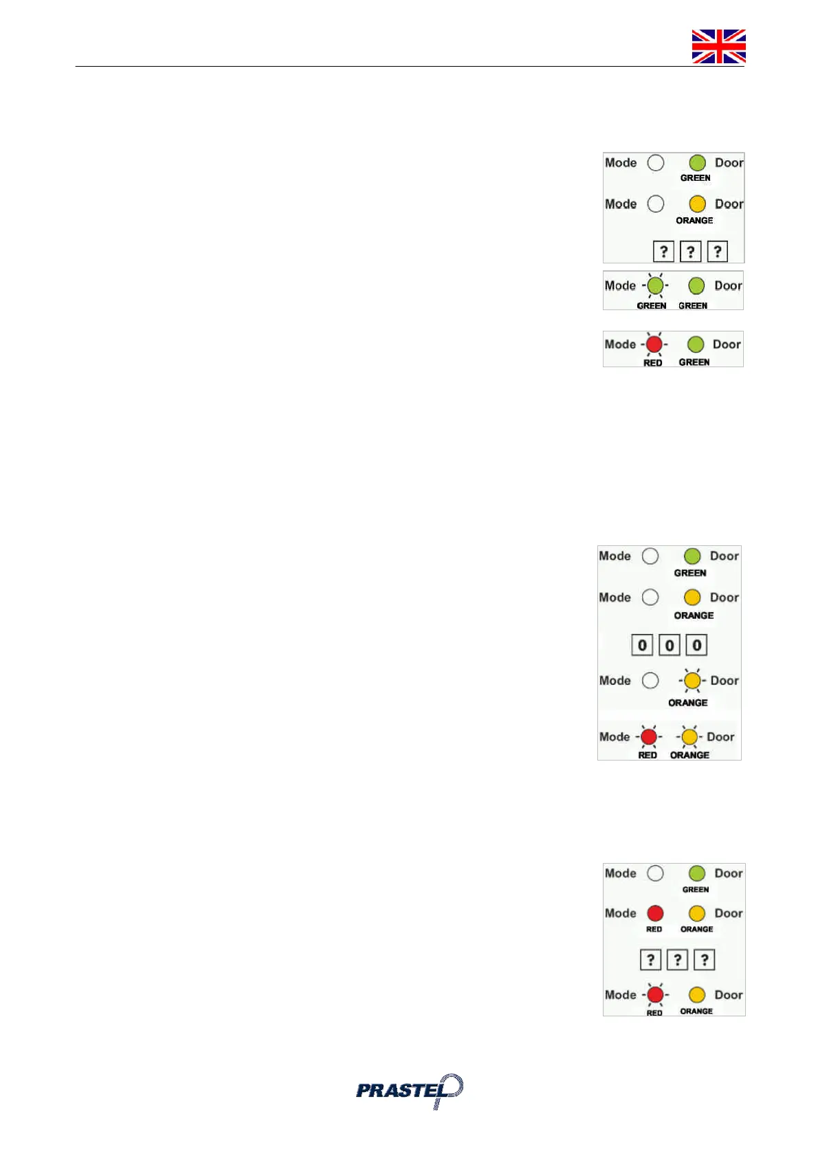 2. Press "7" to enter Menu 7: the Door LED will turn orange.