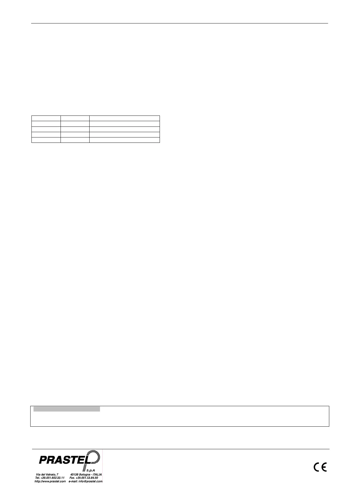 La Société Prastel S.p.A déclare que l'appareil suivant : RÉCEPTEUR SER30E, SER30 EST CONFORME aux critères essentiels de la directive 99/05/EC