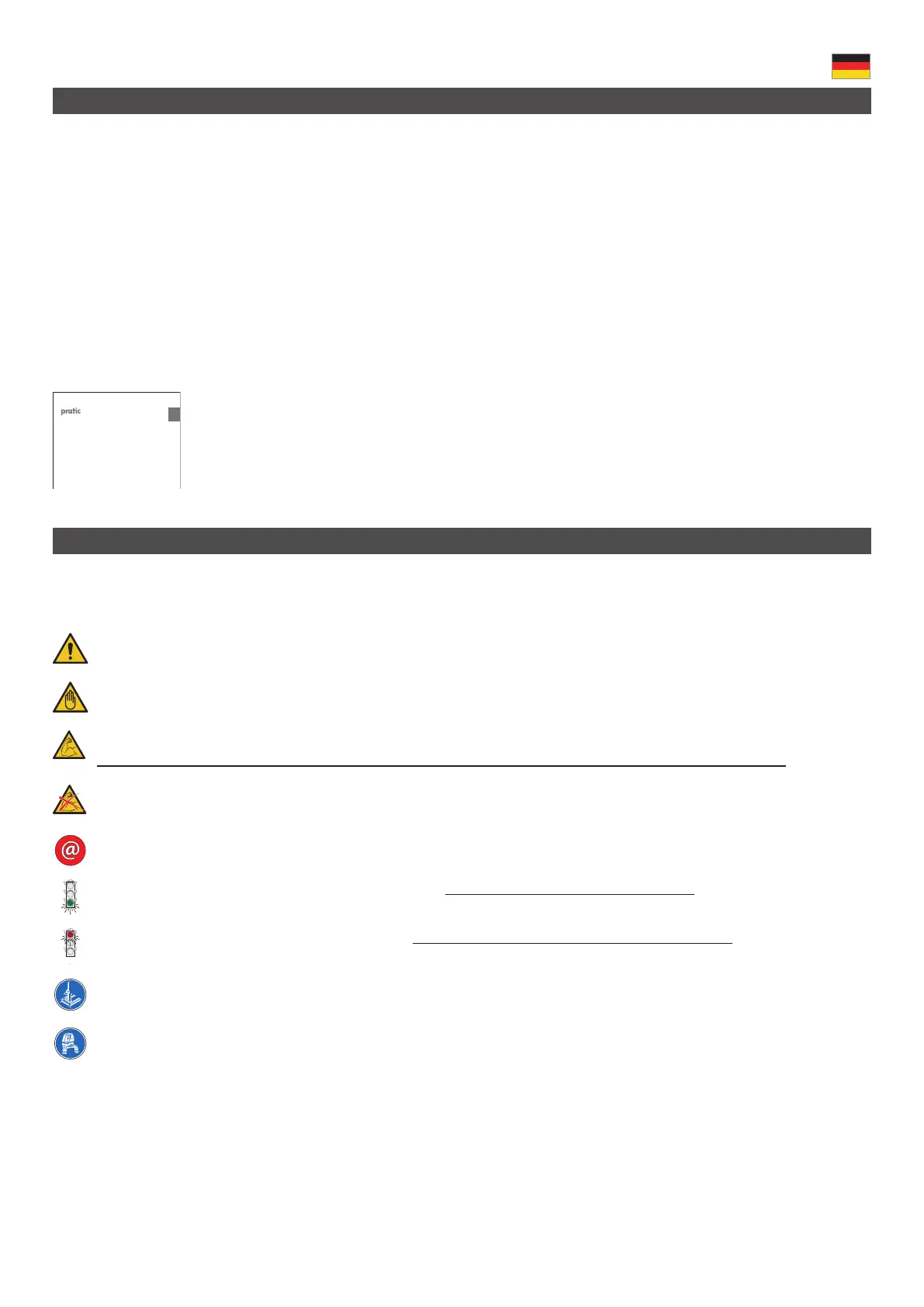 Dieses Symbol weist auf eine mögliche Gefahr für Personen bzw. Schäden am Produkt.