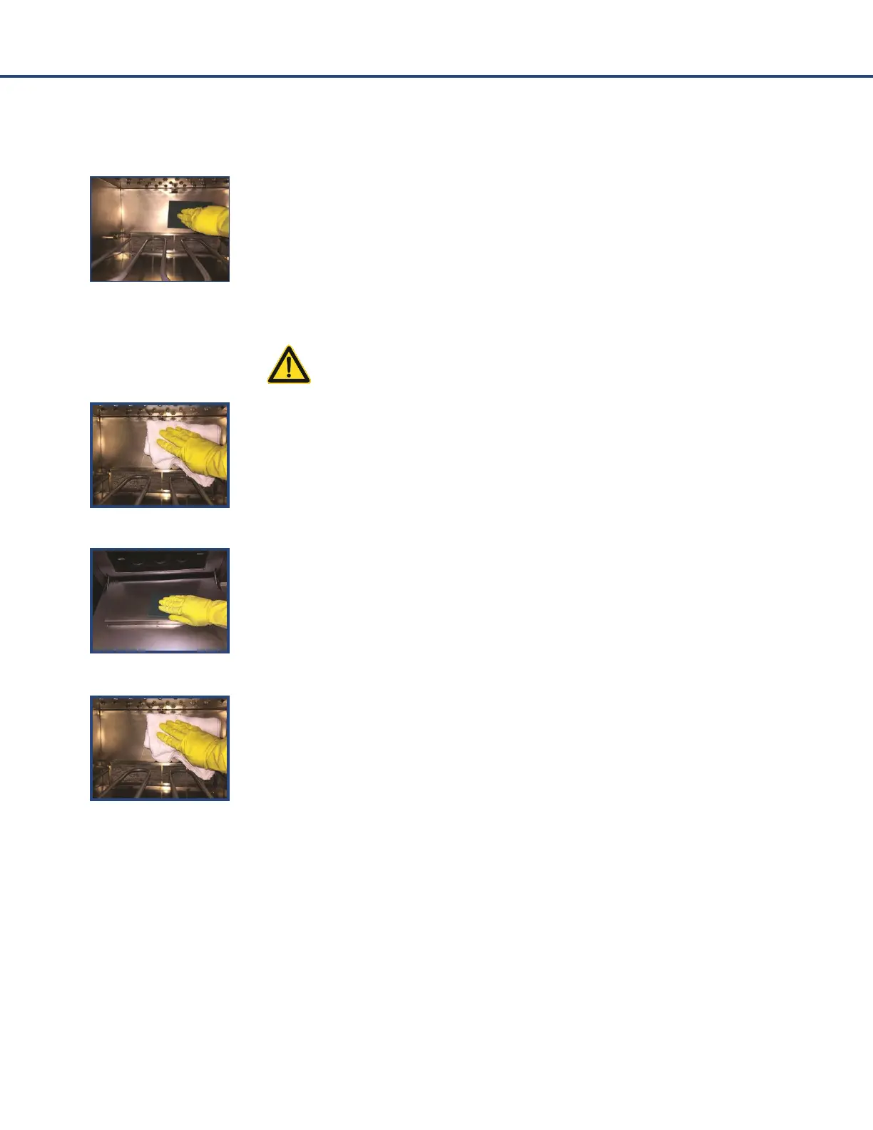 • Apply oven cleaner to a dry cloth or scrub pad and wipe down the sides