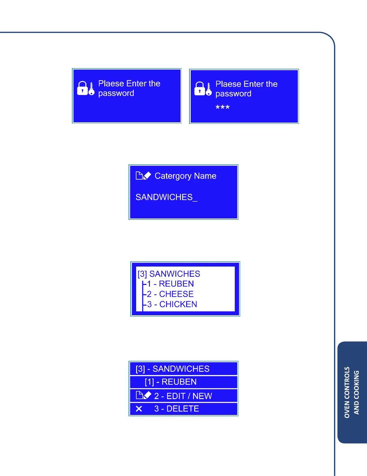 4. The oven will require a password to make any changes. The default password is 123 and then