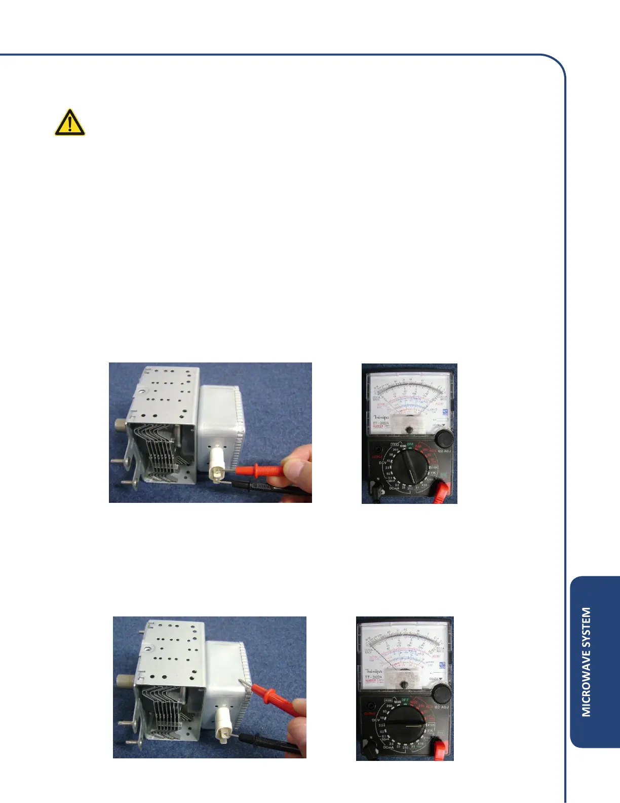 • If the reading shows high resistance or open, the magnetron is faulty and will need to be