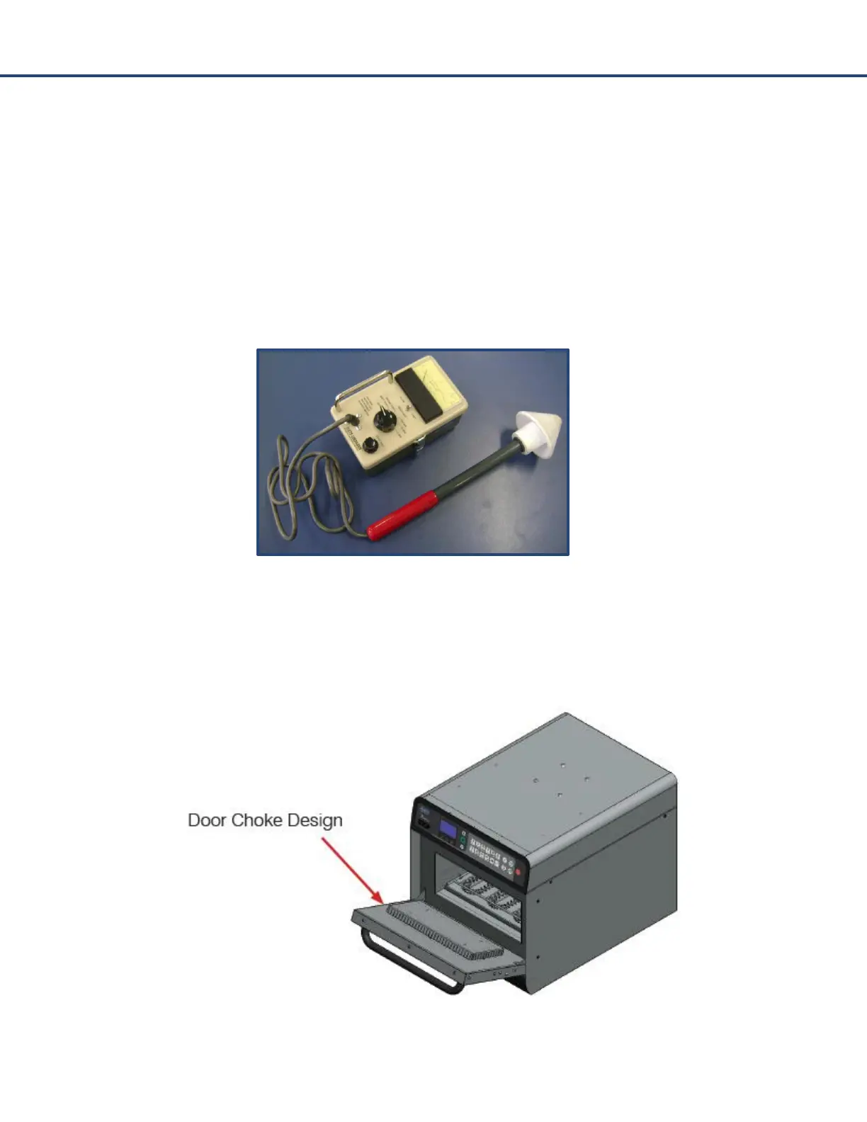 Proper leak testing is performed with a quality test meter designed to sense at 2.45Ghz frequency. A