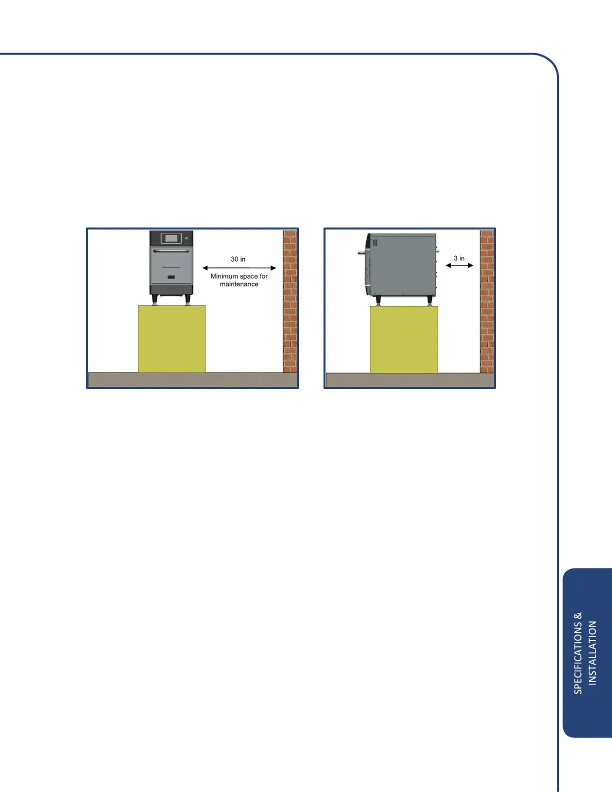 • To facilitate the oven maintenance, Pratica Inc. recommends a space os at least 30in between the right