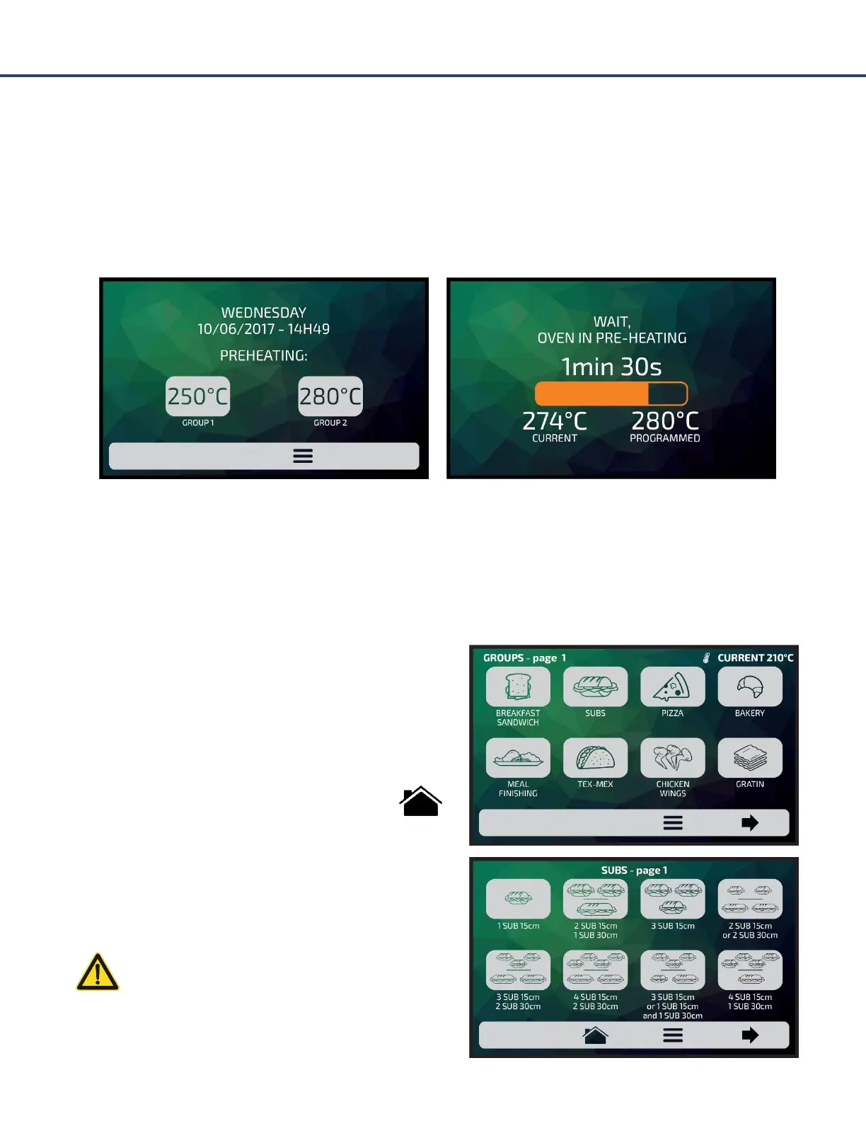 To start the oven preheating process, after turning on the equipment, choose between Preheating