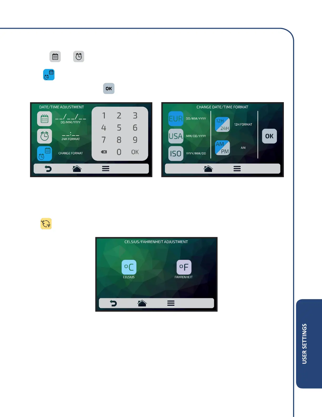 Press to change the date / time format. The opposite screen will be displayed. Choose the date