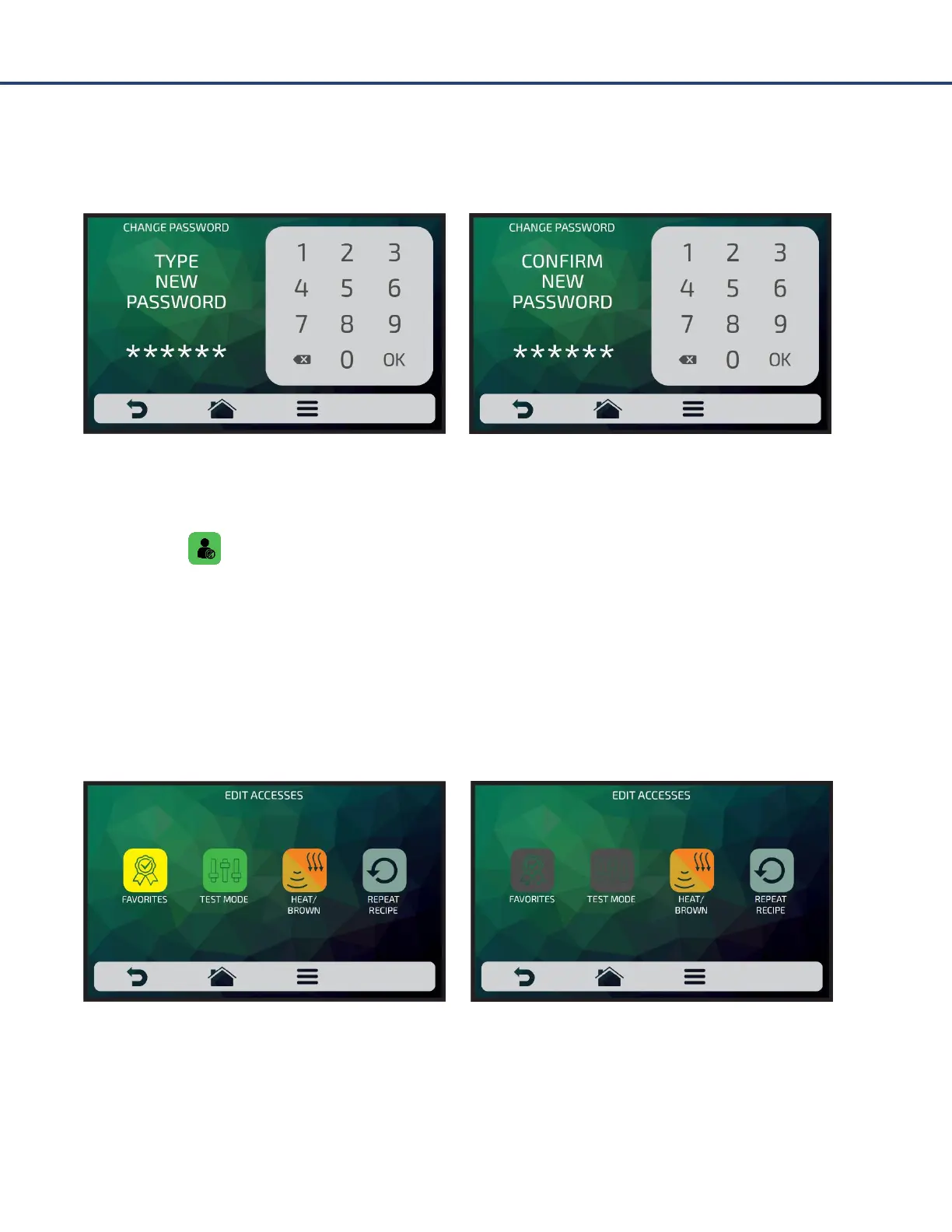 For example: If you wish that the Favorites and Test Mode functions are never accessed by the